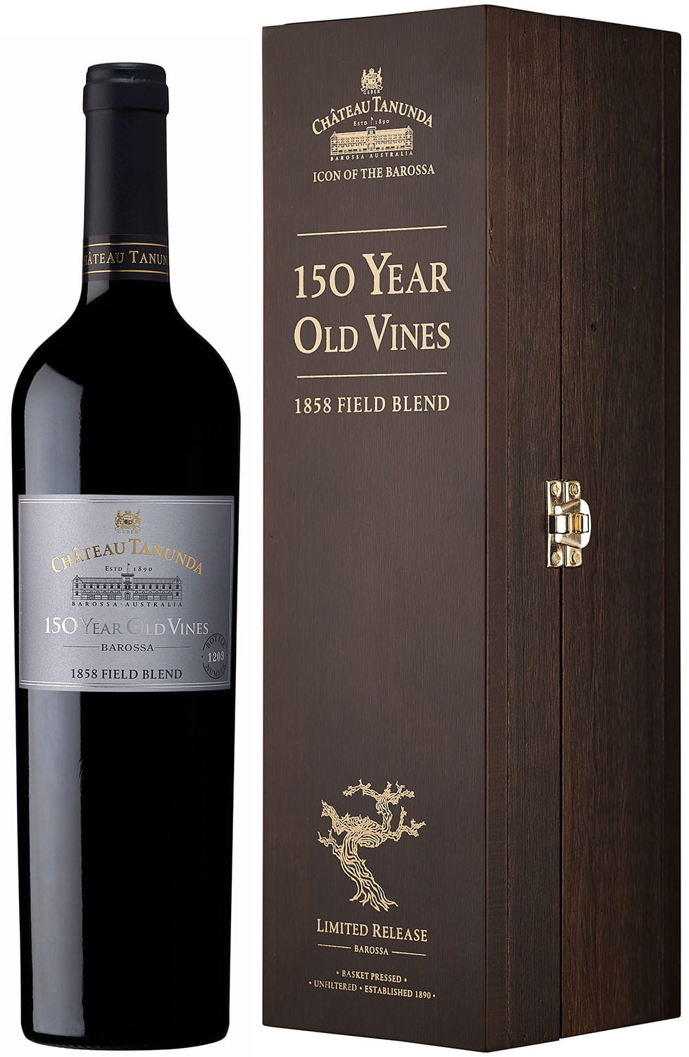 Château Tanunda 150YO 1858 Field Blend to jedno z najbardziej wyjątkowych i unikatowych czerwonych win premium z Australii. Powstało z trzech klasycznych szczepów: Grenache, Mourvèdre i Malbec, pochodzących z winorośli zasadzonych w 1858 roku w prestiżowym regionie Eden Valley. Są to jedne z najstarszych aktywnych krzewów winorośli na świecie, dające ekstremalnie niskie plony, ale o niesamowitej koncentracji i głębi aromatyczno-smakowej.