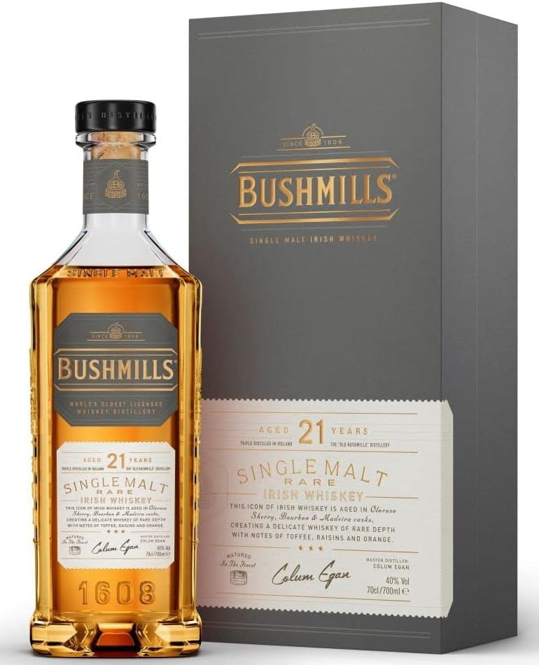 Bushmills 21YO Single Malt to jedna z najbardziej ekskluzywnych i rzadkich irlandzkich whiskey single malt, stworzona dla prawdziwych koneserów i miłośników wyrafinowanych trunków. Destylowana w najstarszej działającej destylarni na świecie – Bushmills Distillery, której tradycja sięga 1608 roku, ta whiskey uosabia wielowiekowe doświadczenie i mistrzowskie rzemiosło.
