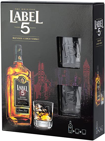 Zestaw Label 5 Classic Whisky 40% 0,7L + 2 szklanki