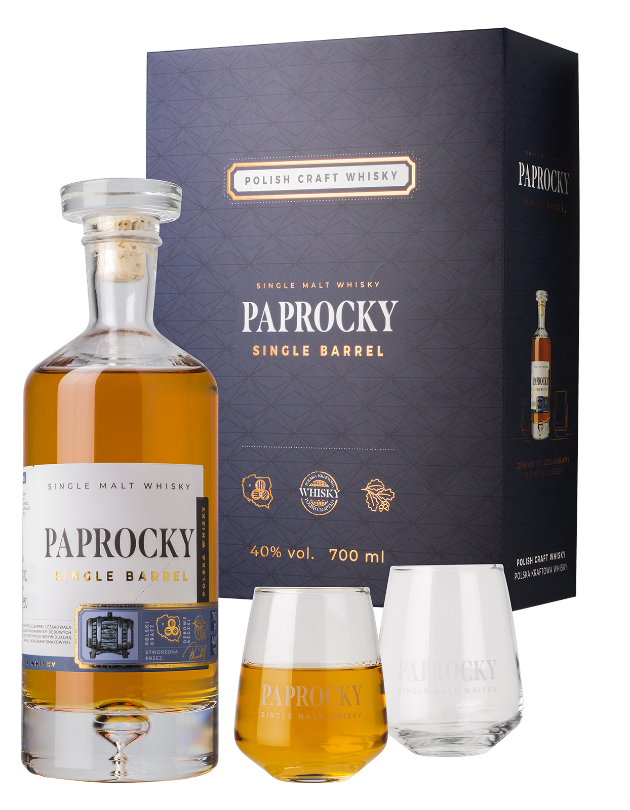 Zestaw Whisky Paprocky Single Barrel + 2 szklanki 40% 0,7L